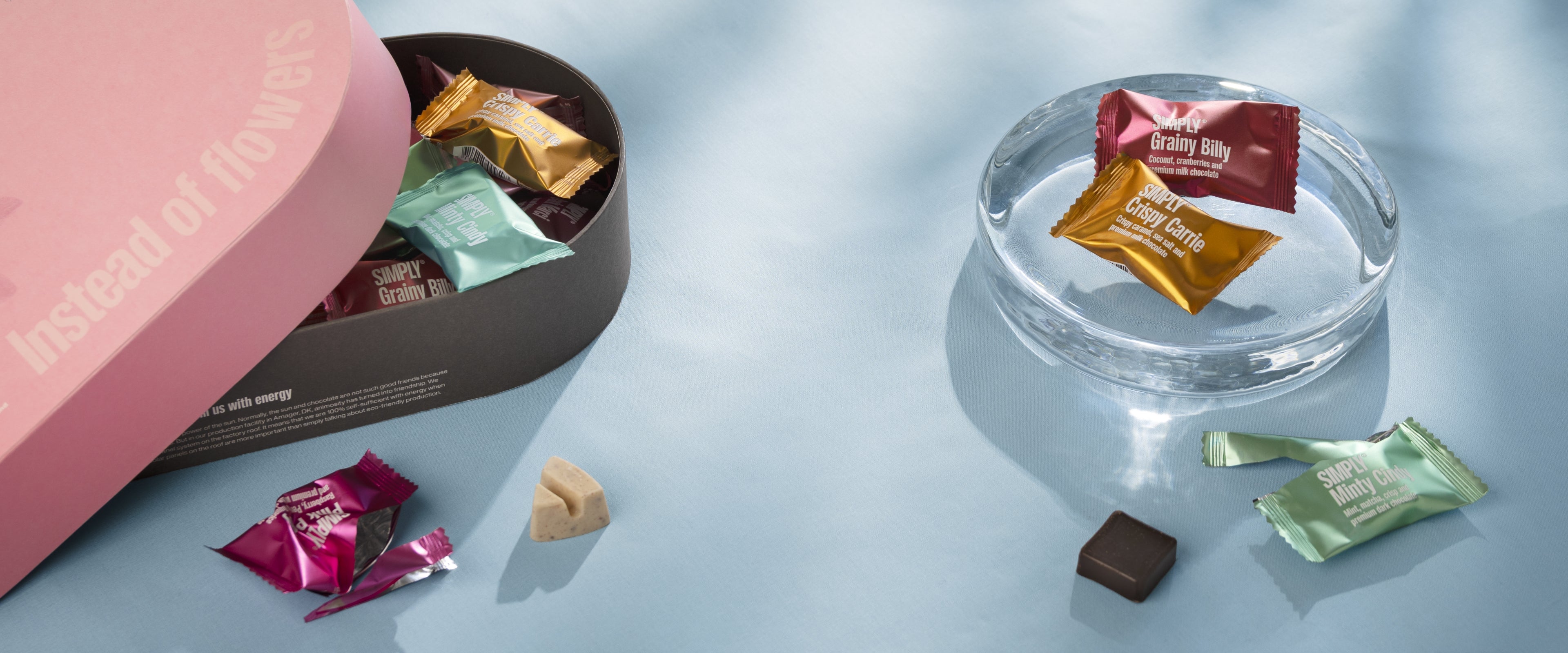 Die Schokolade von Simply® hat sowohl Haltung als auch Charakter, und du kannst sicher sein, dass sie mit Respekt vor Menschen und unserem Planeten hergestellt wird. Verwöhne dich mit unseren Limited Editions, in denen du die einzigartigen Versuchungen in glänzendem Papier findest, die gerade in unserem festen Sortiment zu Gast sind. Unsere schön verpackten Schokoladen sind ein wahres Farbenmeer, und die Verpackung spricht eine klare Sprache, denn die Schachteln von Simply® enthalten etwas ganz Besonderes.