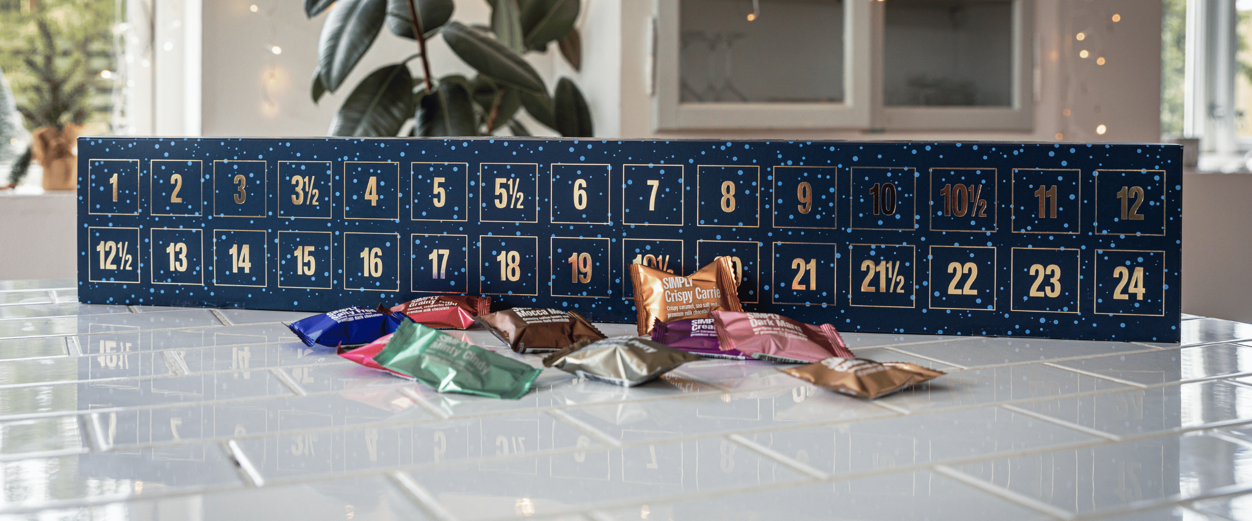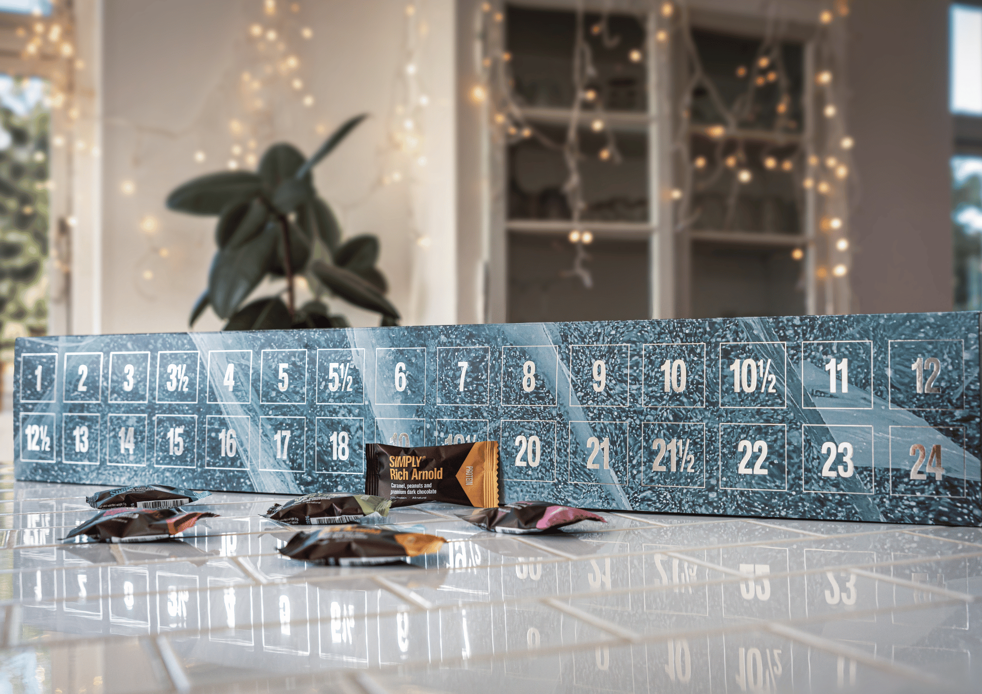 Simply® Unwrap Your Energy: Unsere Neuheit – ein Protein-Adventskalender mit 30 Protein-Bites.